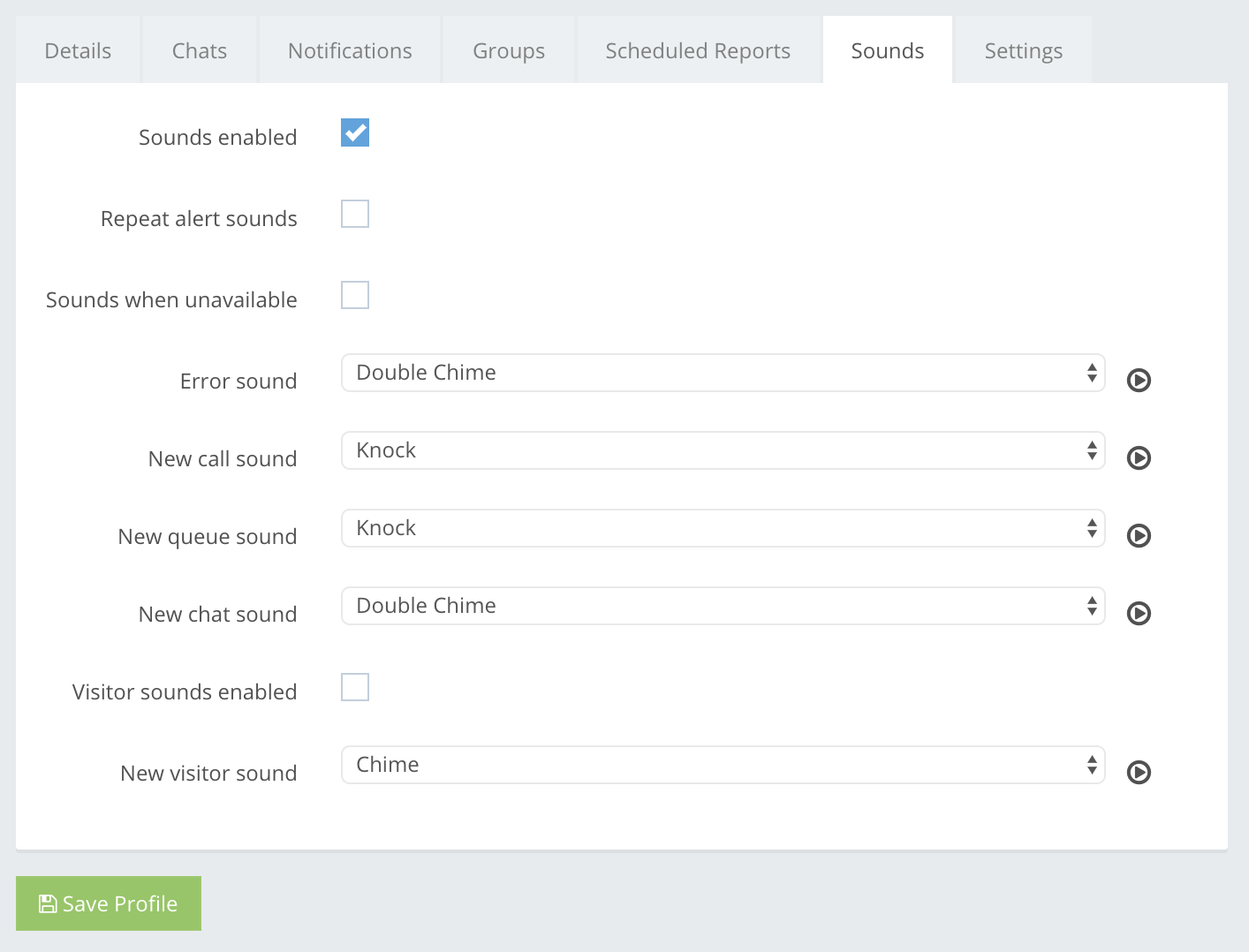 Unchecked: A sound is not played when there is a new visitor on the website.