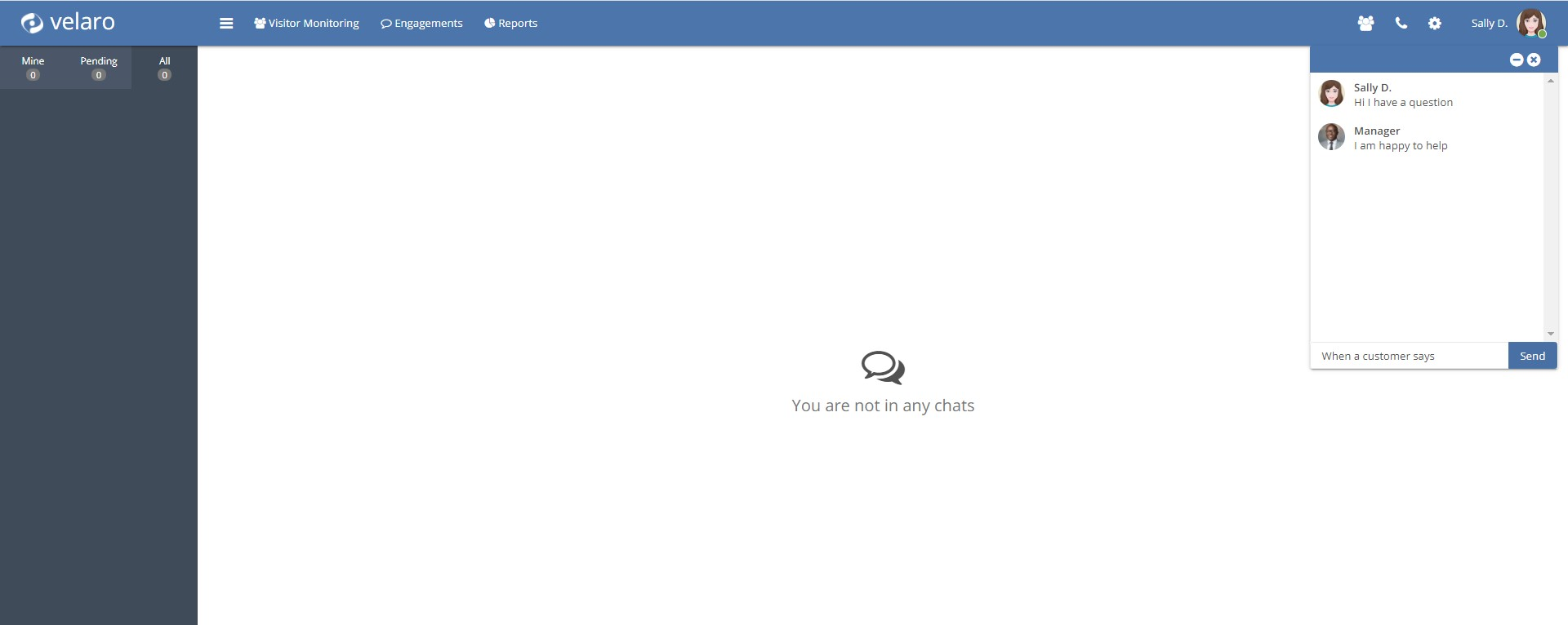 | Engagements | Engagements is where agents conduct chats with visitors. | |