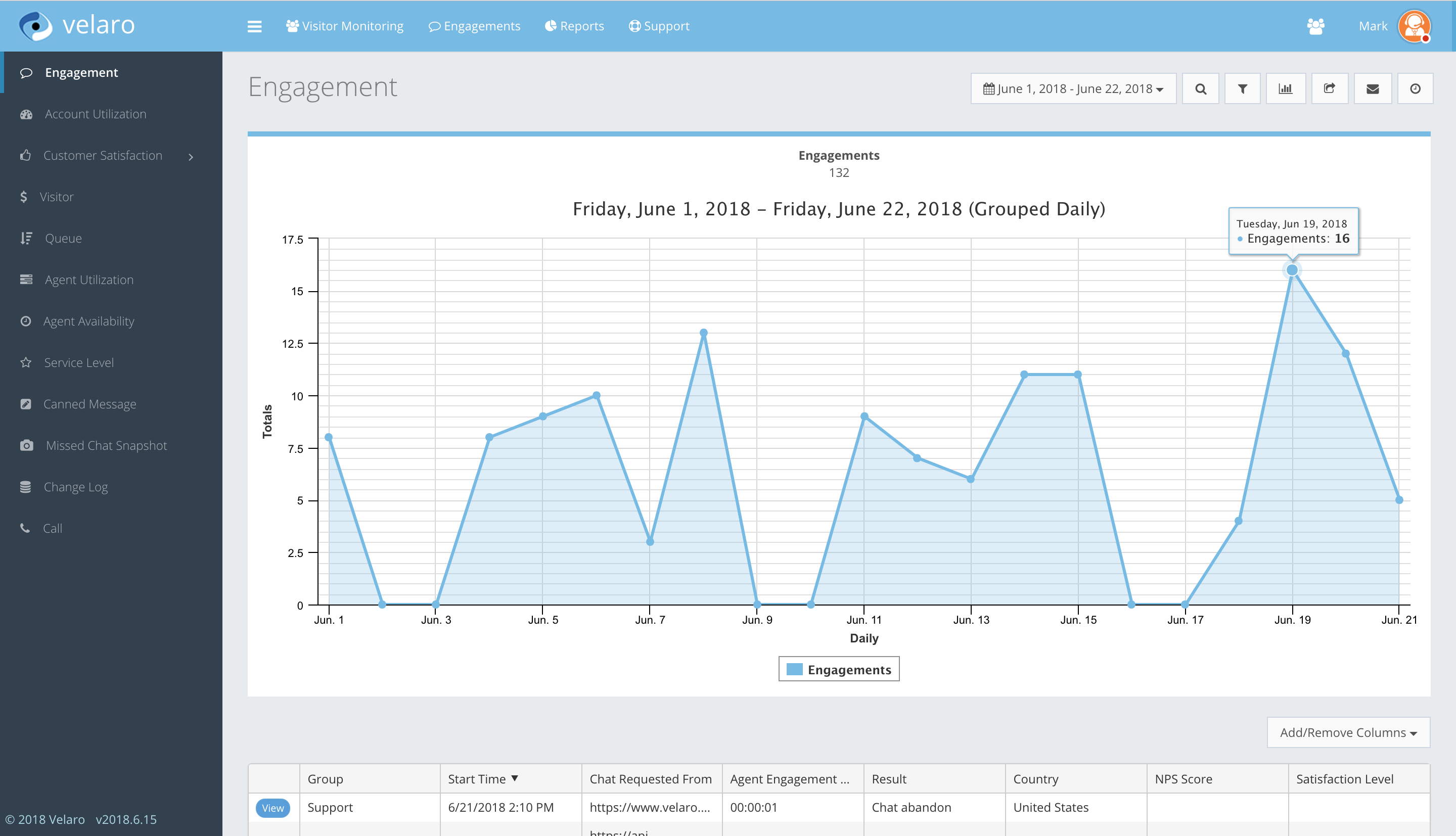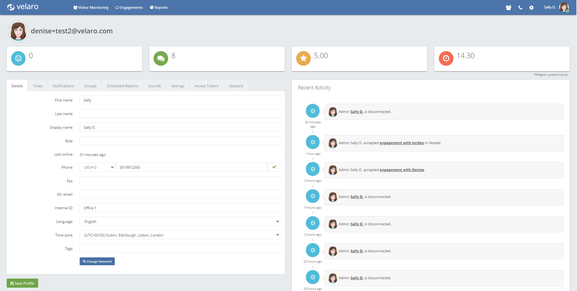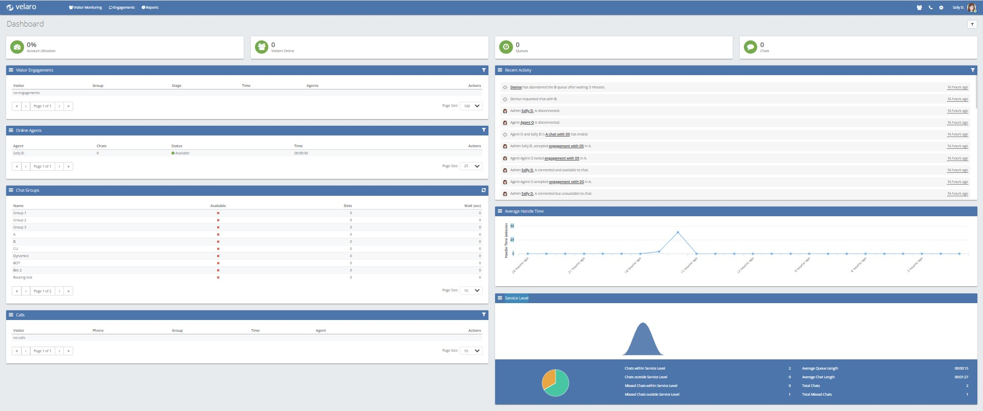 | Engagements Dashboard | The Dashboard displays a set of widgets that provide chat data and control options. Note: The dashboard is only available to Managers and Administrators. | |