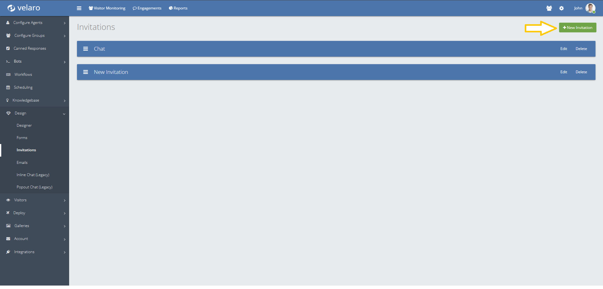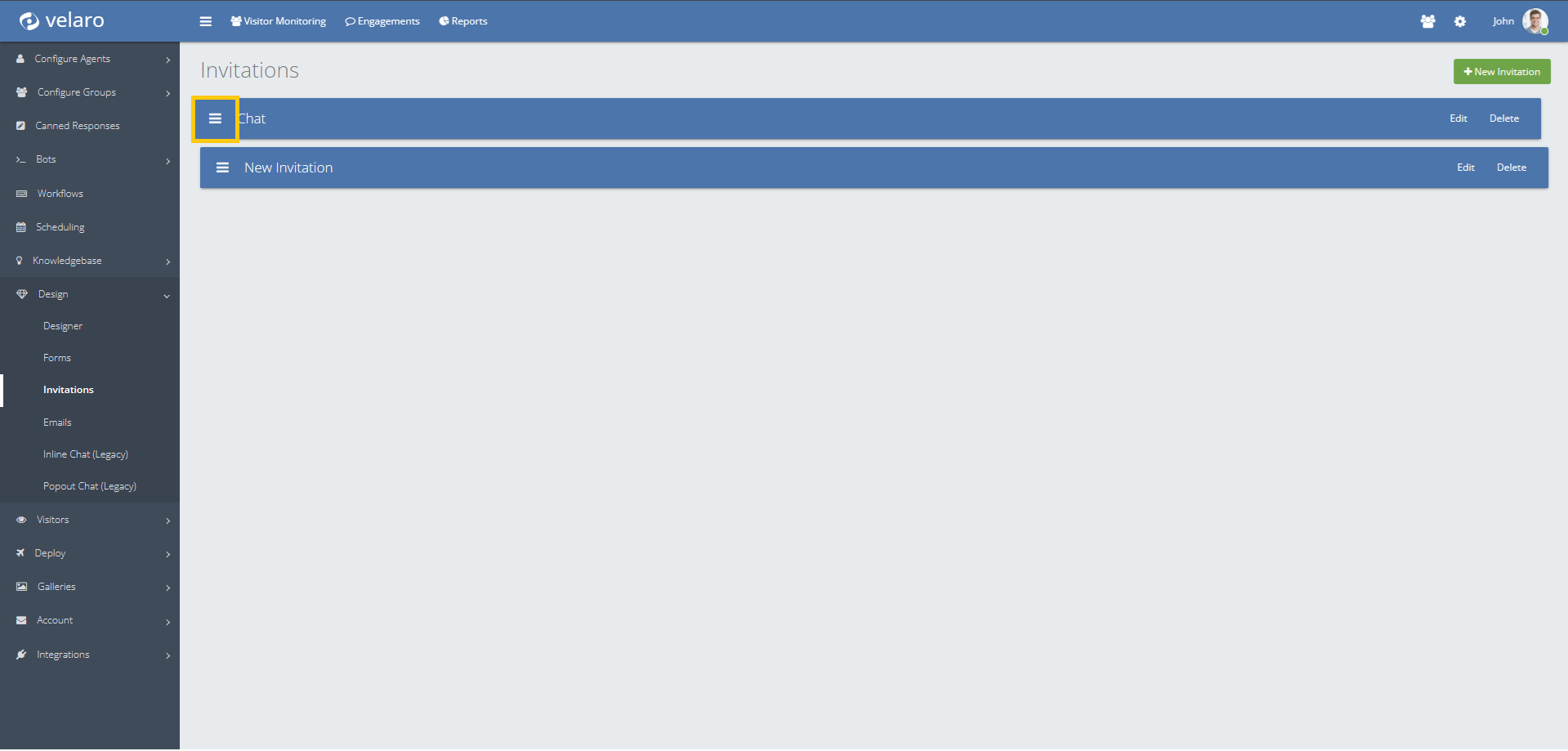 Invitations are proactive messages that appear on your website to encourage a visitor to start a chat. You control the design, placement, and conditions for when each invitation displays. Invitations can appear as a bubble, inline element, or pop-over, depending on how you want to present them.