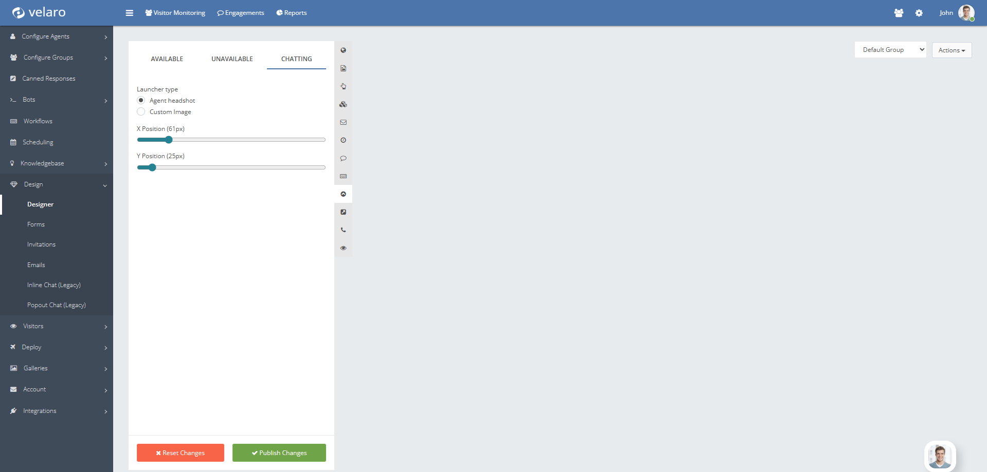 Inline invitations appear in the same location as your inline chat launcher. They replace the launcher with either the chat window or a custom image, depending on the option you choose.