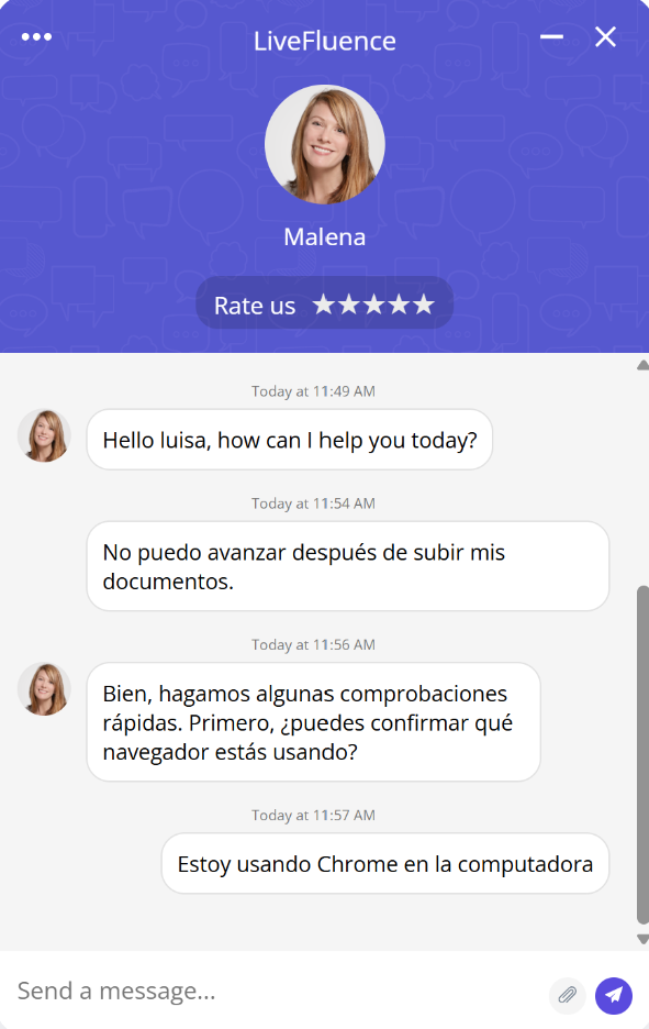 - The agent will start seeing the visitor’s messages in Spanish, not translated into English.